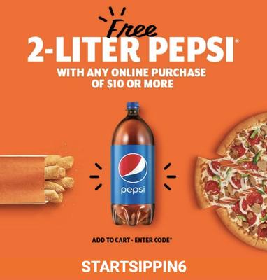 Little Caesars Offers Free 2-Liter Pepsi With Any Online Pizza Purchase ... In order to score the deal, simply purchase any pizza through the Little Caesars app or online with promo code " FREE2L2 .". The offer is also valid for delivery at participating locations, with a limit of one free 2-liter Pepsi product per customer, per order, per day during the promotion period. Don't forget to add a 2-liter Pepsi ...