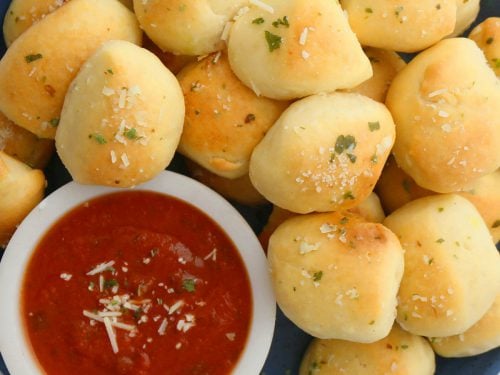 Copycat Domino's Parmesan Bread Bites - Yummy Noises Mix the remaining 1/4 tsp garlic salt and 1/4 tsp parsley with the remaining 2 Tbsp melted butter. Brush the butter mixture liberally over the bread bites. Scoot the pieces together on the pan and grate more parmesan cheese over top (about 1-2 Tbsp). Transfer to a platter and serve with marinara or pizza sauce for dipping.